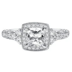 ArtCarved Bridal Artcarved Bridal Semi-Mounted With Side Stones Vintage Vintage Halo Engagement Ring Lilith 18K White Gold