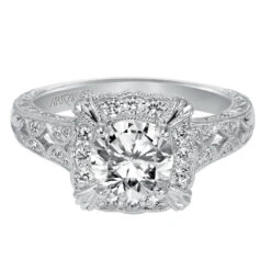 ArtCarved Bridal Artcarved Bridal Mounted With CZ Center Vintage Engagement Ring Amy 14K White Gold