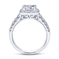 Gabriel & Co. Gabriel & Co. 14k White Gold Art Deco 3 Stone Diamond & Gemstone Halo Engagement Ring