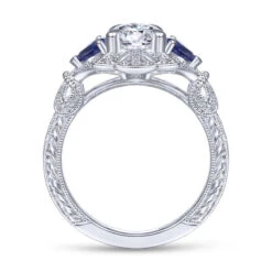 Gabriel & Co. Gabriel & Co. 14k White Gold Contemporary 3 Stone Diamond & Gemstone Engagement Ring