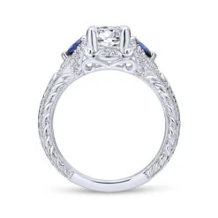 Gabriel & Co. Gabriel & Co. 14k White Gold Victorian 3 Stone Diamond & Gemstone Engagement Ring