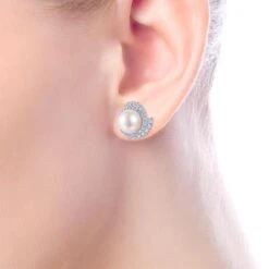 Gabriel & Co. Fashion Gabriel & Co. 14k White Gold Grace Pearl & Diamond Stud Earrings