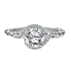 ArtCarved Bridal Artcarved Bridal Mounted With CZ Center Contemporary Rope Halo Engagement Ring Jolie 14K White Gold