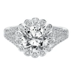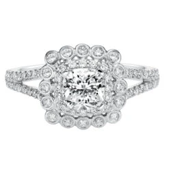 ArtCarved Bridal Artcarved Bridal Semi-Mounted With Side Stones Contemporary Bezel Halo Engagement Ring Ciana 14K White Gold
