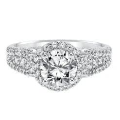 ArtCarved Bridal Artcarved Bridal Semi-Mounted With Side Stones Contemporary Bezel Halo Engagement Ring Ciana 14K White Gold
