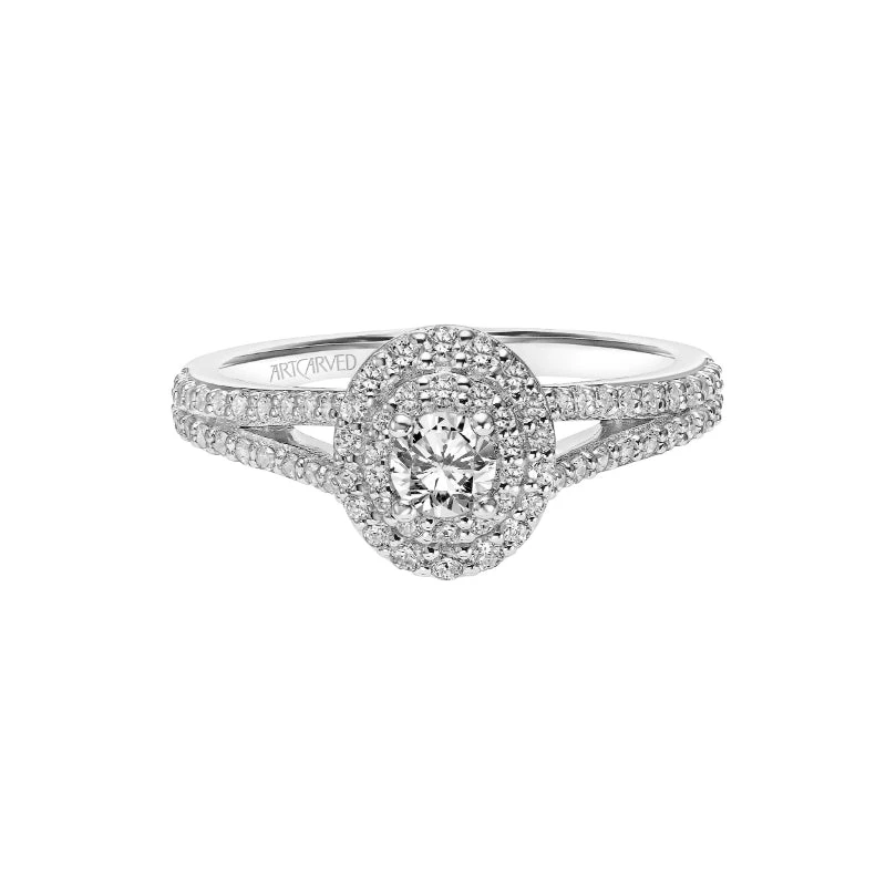 SKU: Y2ZYA 82315808934711 Categories: Engagement Rings, Halo Tags: Category_l1: Engagement Rings>Halo, Category_l2: Halo, Category_tree: Engagement Rings>Halo, Center_stone_shape: Round, Collection: Onelove, Designer: ArtCarved Bridal, Diamond_setting: Prong, Gender: Women, Metal_color: White, Metal_type: 18k Gold, Number_of_diamonds: 73