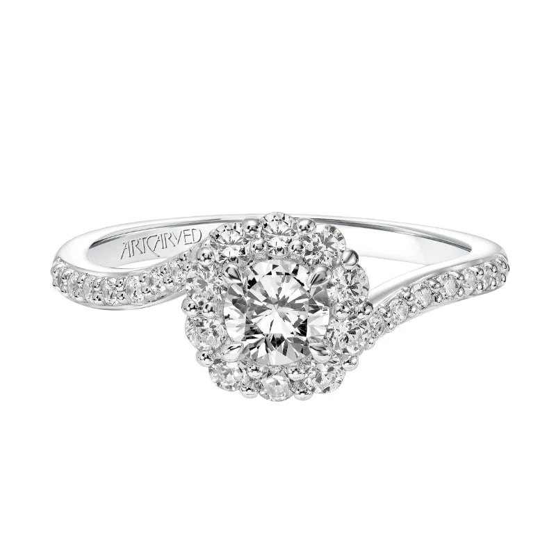 SKU: Y2ZYA 82315826301751 Categories: Bypass, Engagement Rings Tags: Category_l1: Engagement Rings>Bypass, Category_l2: Bypass, Category_tree: Engagement Rings>Bypass, Center_stone_shape: Round, Collection: Onelove, Designer: ArtCarved Bridal, Diamond_setting: Prong, Gender: Women, Metal_color: White, Metal_type: 14k Gold, Number_of_diamonds: 29