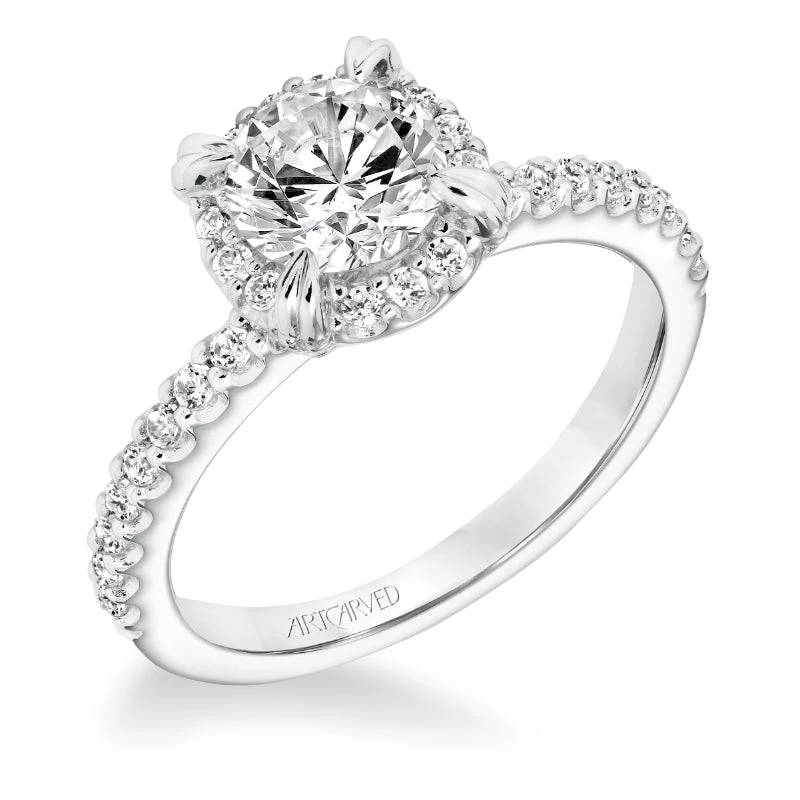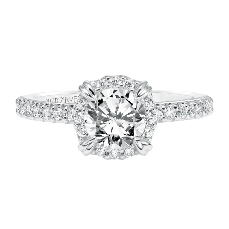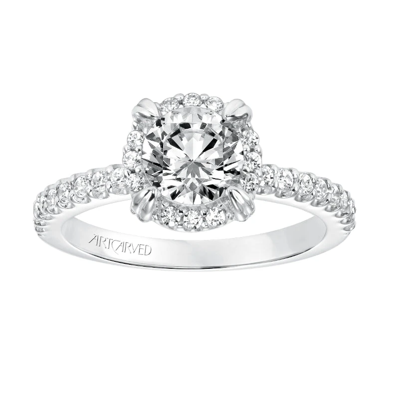 SKU: Y2ZYA 82314526722871 Categories: Engagement Rings, Halo Tags: Category_l1: Engagement Rings>Halo, Category_l2: Halo, Category_tree: Engagement Rings>Halo, Center_stone_shape: Round, Collection: Halo, Designer: ArtCarved Bridal, Diamond_setting: Prong, Gemstone_color: White, Gender: Women, Metal_color: White, Metal_type: 14k Gold, Number_of_diamonds: 47, Type_of_gemstone: Cubic Zirconia