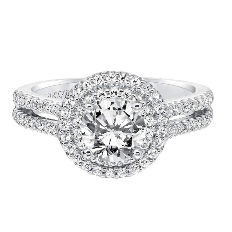 SKU: Y2ZYA 82314416294711 Categories: Double Halo, Engagement Rings Tags: Category_l1: Engagement Rings>Double Halo, Category_l2: Double Halo, Category_tree: Engagement Rings>Double Halo, Center_stone_shape: Round, Collection: Halo, Designer: ArtCarved Bridal, Gemstone_setting: Prong, Gender: Women, Metal_color: White, Metal_type: 14k Gold, Type_of_gemstone: Cubic Zirconia