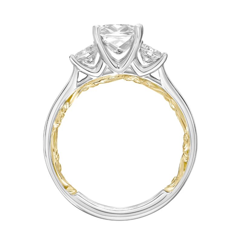 ArtCarved Bridal Artcarved Bridal Mounted With CZ Center Classic Lyric 3-Stone Engagement Ring Christy 14K White Gold Primary & 14K Yellow Gold