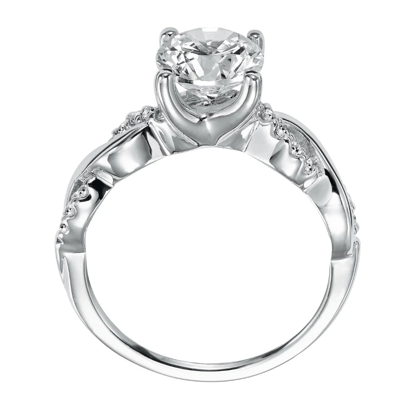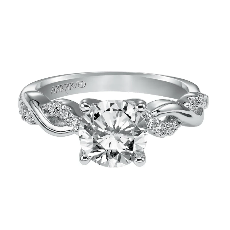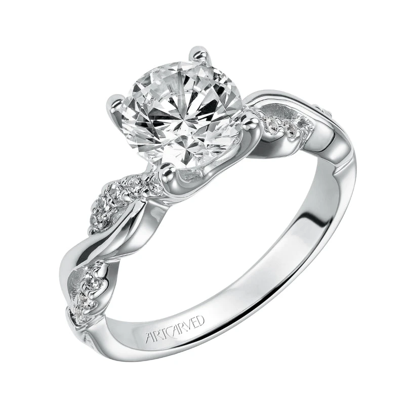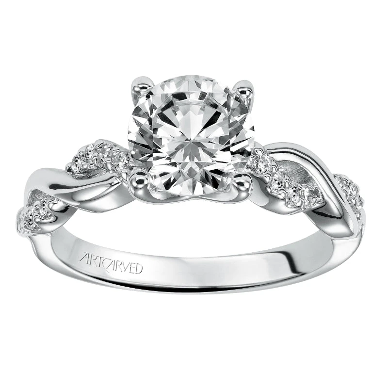 SKU: Y2ZYA 82313361165111 Categories: Engagement Rings, Twisted Tags: Category_l1: Engagement Rings>Twisted, Category_l2: Twisted, Category_tree: Engagement Rings>Twisted, Center_stone_shape: Round, Collection: Twist, Designer: ArtCarved Bridal, Diamond_setting: Prong, Gemstone_color: White, Gender: Women, Metal_color: White, Metal_type: 14k Gold, Number_of_diamonds: 17, Type_of_gemstone: Cubic Zirconia
