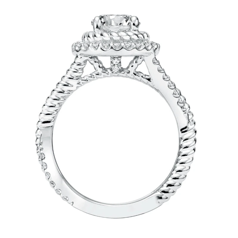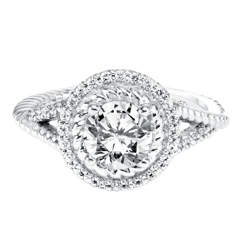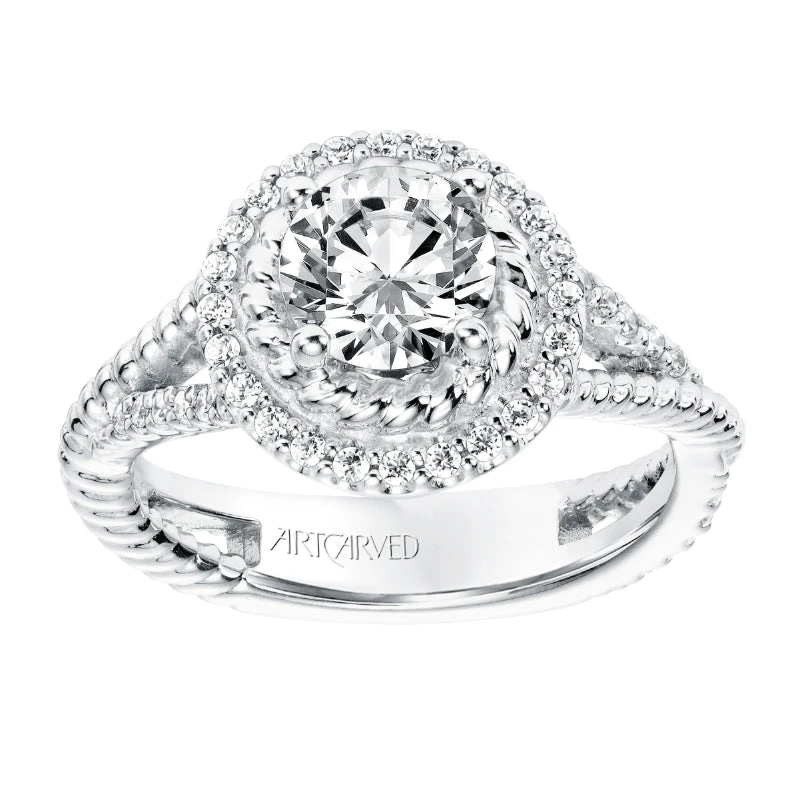 ArtCarved Bridal Artcarved Bridal Mounted With CZ Center Contemporary Rope Halo Engagement Ring Skyla 14K White Gold