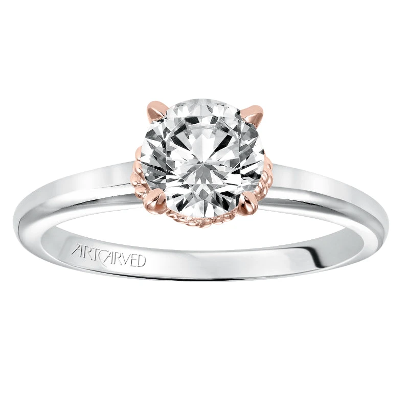 ArtCarved Bridal Artcarved Bridal Mounted With CZ Center Contemporary Rope Solitaire Engagement Ring Clarice 14K White Gold Primary & 14K Rose Gold