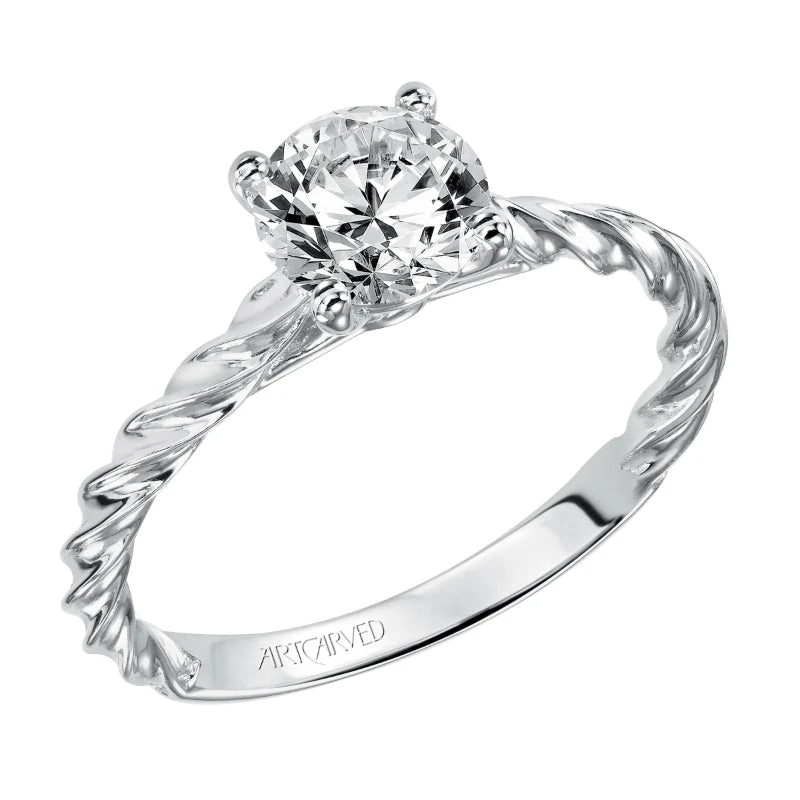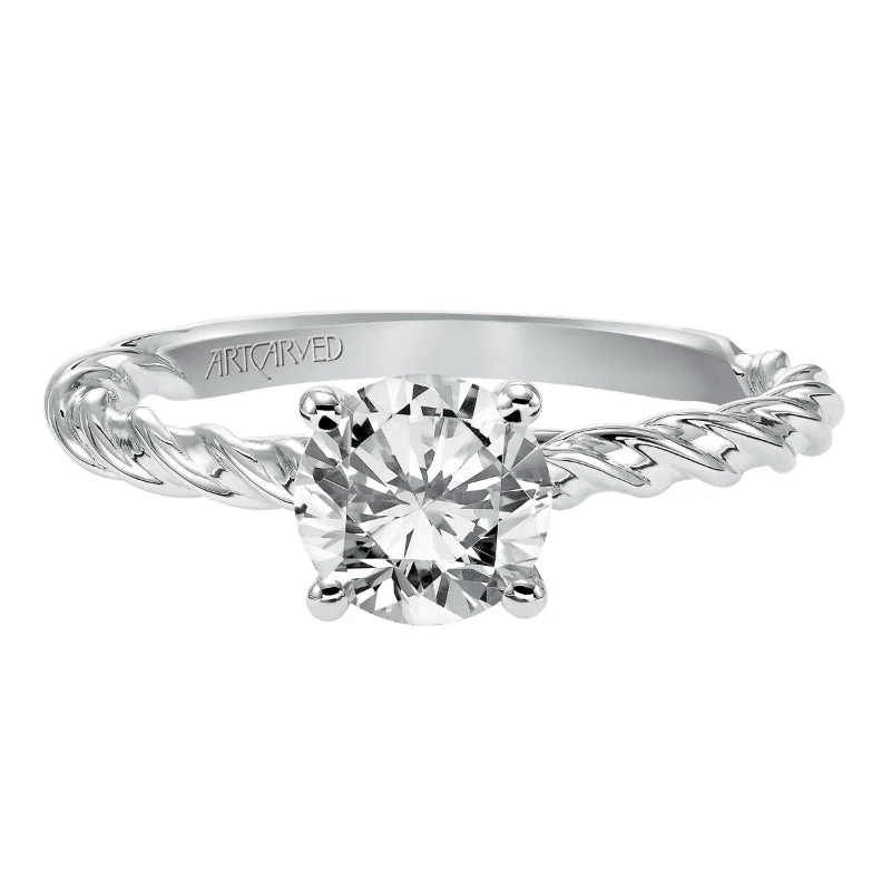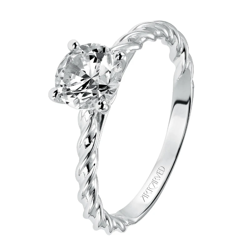 SKU: Y2ZYA 82313955576631 Categories: Engagement Rings, Solitaire Tags: Category_l1: Engagement Rings>Solitaire, Category_l2: Solitaire, Category_tree: Engagement Rings>Solitaire, Center_stone_shape: Round, Collection: Rope, Designer: ArtCarved Bridal, Gemstone_setting: Prong, Gender: Women, Metal_color: White, Metal_type: 14k Gold, Type_of_gemstone: Cubic Zirconia