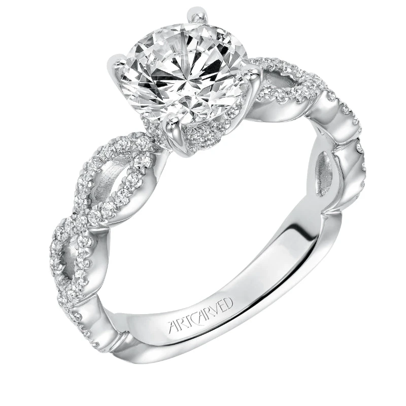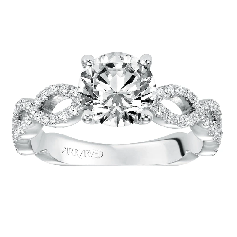 ArtCarved Bridal Artcarved Bridal Mounted With CZ Center Contemporary Twist Diamond Engagement Ring 14K White Gold