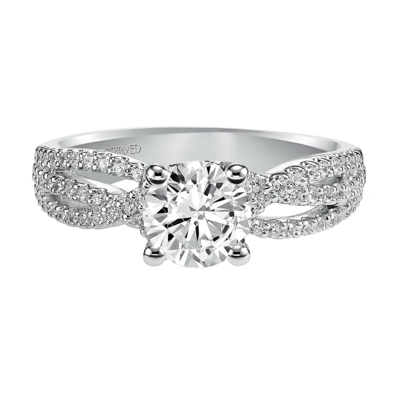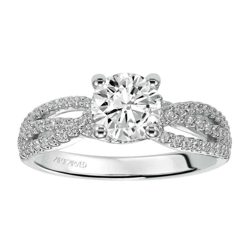 SKU: Y2ZYA 82313791081271 Categories: Engagement Rings, Twisted Tags: Category_l1: Engagement Rings>Twisted, Category_l2: Twisted, Category_tree: Engagement Rings>Twisted, Center_stone_shape: Round, Collection: Twist, Designer: ArtCarved Bridal, Diamond_setting: Prong, Gemstone_color: White, Gender: Women, Metal_color: White, Metal_type: 14k Gold, Number_of_diamonds: 69, Type_of_gemstone: Cubic Zirconia