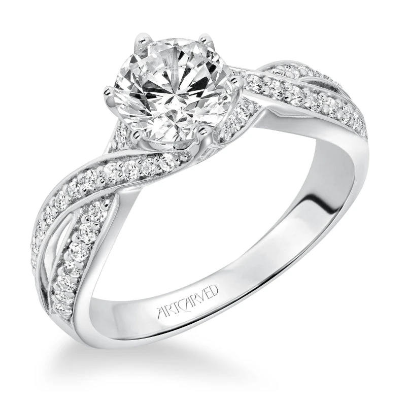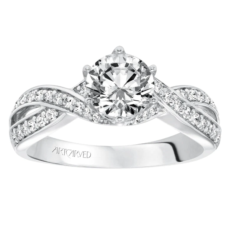 ArtCarved Bridal Artcarved Bridal Mounted With CZ Center Contemporary Twist Diamond Engagement Ring Presley 14K White Gold