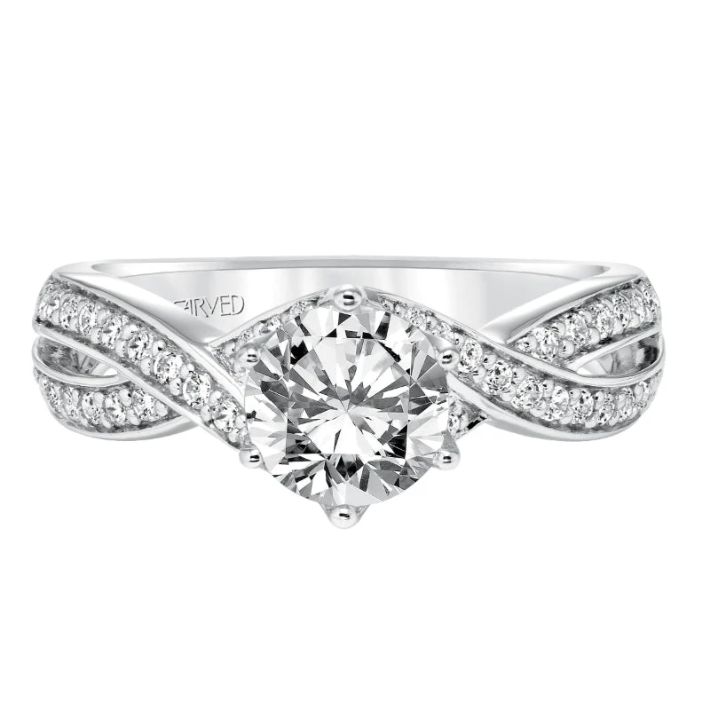 SKU: Y2ZYA 82314361899831 Categories: Engagement Rings, Split Shank Tags: Category_l1: Engagement Rings>Split Shank, Category_l2: Split Shank, Category_tree: Engagement Rings>Split Shank, Center_stone_shape: Round, Collection: Twist, Designer: ArtCarved Bridal, Gemstone_setting: Prong, Gender: Women, Metal_color: White, Metal_type: 14k Gold, Type_of_gemstone: Cubic Zirconia