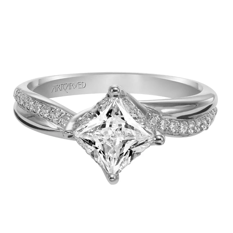 SKU: Y2ZYA 82313264499511 Categories: Engagement Rings, Twisted Tags: Category_l1: Engagement Rings>Twisted, Category_l2: Twisted, Category_tree: Engagement Rings>Twisted, Center_stone_shape: Princess, Collection: Twist, Designer: ArtCarved Bridal, Diamond_setting: Prong, Gemstone_color: White, Gender: Women, Metal_color: White, Metal_type: 14k Gold, Number_of_diamonds: 33, Type_of_gemstone: Cubic Zirconia