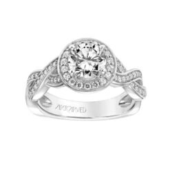 SKU: Y2ZYA 82314920266551 Categories: Engagement Rings, Halo Tags: Category_l1: Engagement Rings>Halo, Category_l2: Halo, Category_tree: Engagement Rings>Halo, Center_stone_shape: Round, Collection: Twist, Designer: ArtCarved Bridal, Diamond_setting: Prong, Gemstone_color: White, Gender: Women, Metal_color: White, Metal_type: 14k Gold, Number_of_diamonds: 117, Type_of_gemstone: Cubic Zirconia