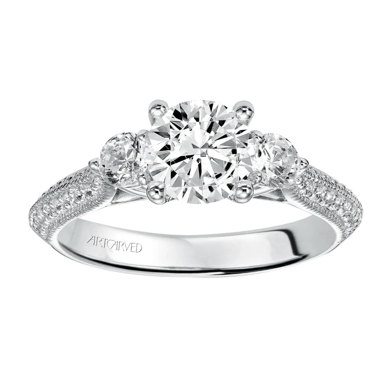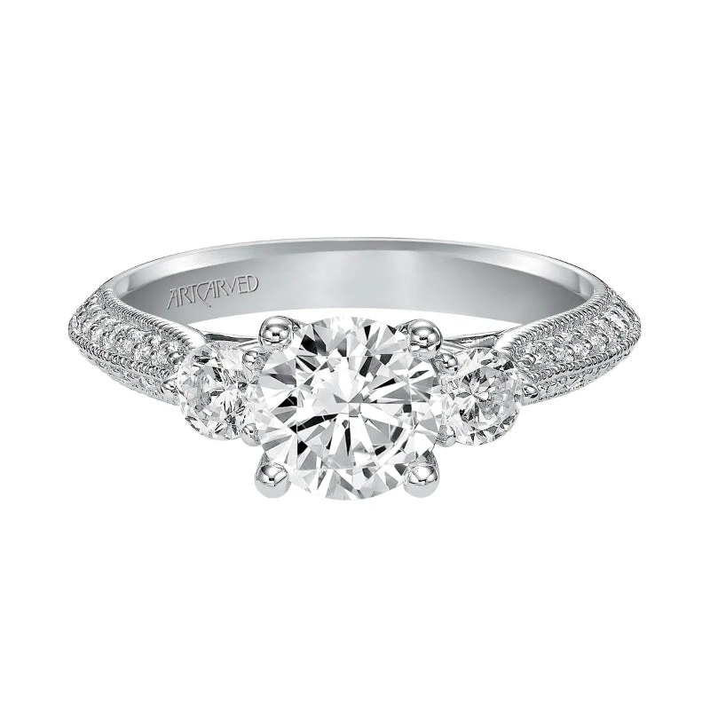 ArtCarved Bridal Artcarved Bridal Mounted With CZ Center Vintage 3-Stone Engagement Ring Bridget 14K White Gold
