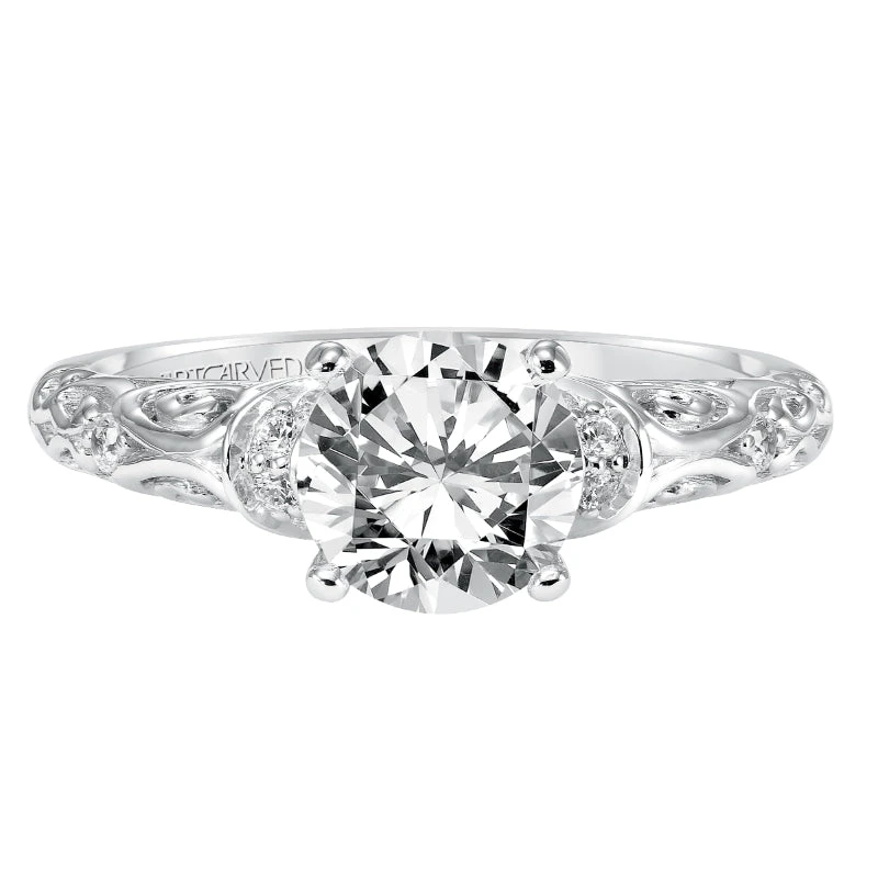 ArtCarved Bridal Artcarved Bridal Mounted With CZ Center Vintage Engagement Ring Peyton 14K White Gold
