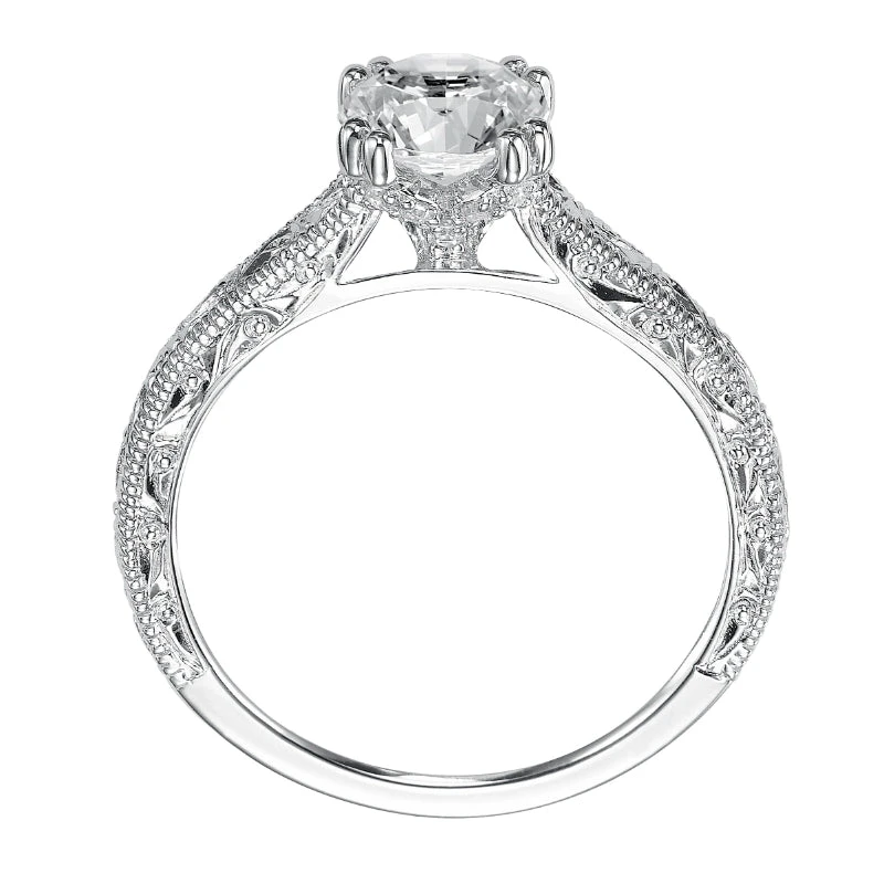 ArtCarved Bridal Artcarved Bridal Mounted With CZ Center Vintage Engraved Solitaire Engagement Ring Bernadette 14K White Gold
