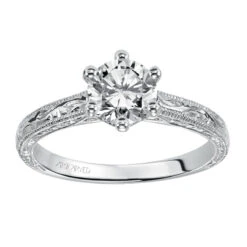 SKU: Y2ZYA 82313819589431 Categories: Engagement Rings, Vintage Tags: Category_l1: Engagement Rings>Vintage, Category_l2: Vintage, Category_tree: Engagement Rings>Vintage, Center_stone_shape: Round, Collection: Vintag, Designer: ArtCarved Bridal, Diamond_setting: Prong, Gemstone_color: White, Gender: Women, Metal_color: White, Metal_type: 14k Gold, Number_of_diamonds: 1, Type_of_gemstone: Cubic Zirconia