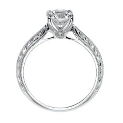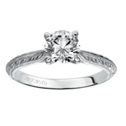 SKU: Y2ZYA 82314049620791 Categories: Engagement Rings, Solitaire Tags: Category_l1: Engagement Rings>Solitaire, Category_l2: Solitaire, Category_tree: Engagement Rings>Solitaire, Center_stone_shape: Round, Collection: Engrav, Designer: ArtCarved Bridal, Diamond_setting: Prong, Gemstone_color: White, Gender: Women, Metal_color: White, Metal_type: 14k Gold, Number_of_diamonds: 3, Type_of_gemstone: Cubic Zirconia