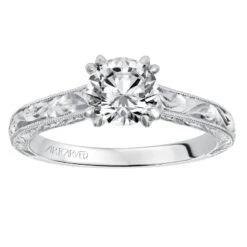 SKU: Y2ZYA 82314266544951 Categories: Engagement Rings, Solitaire Tags: Category_l1: Engagement Rings>Solitaire, Category_l2: Solitaire, Category_tree: Engagement Rings>Solitaire, Center_stone_shape: Round, Collection: Engrav, Designer: ArtCarved Bridal, Diamond_setting: Prong, Gemstone_color: White, Gender: Women, Metal_color: White, Metal_type: 14k Gold, Number_of_diamonds: 3, Type_of_gemstone: Cubic Zirconia