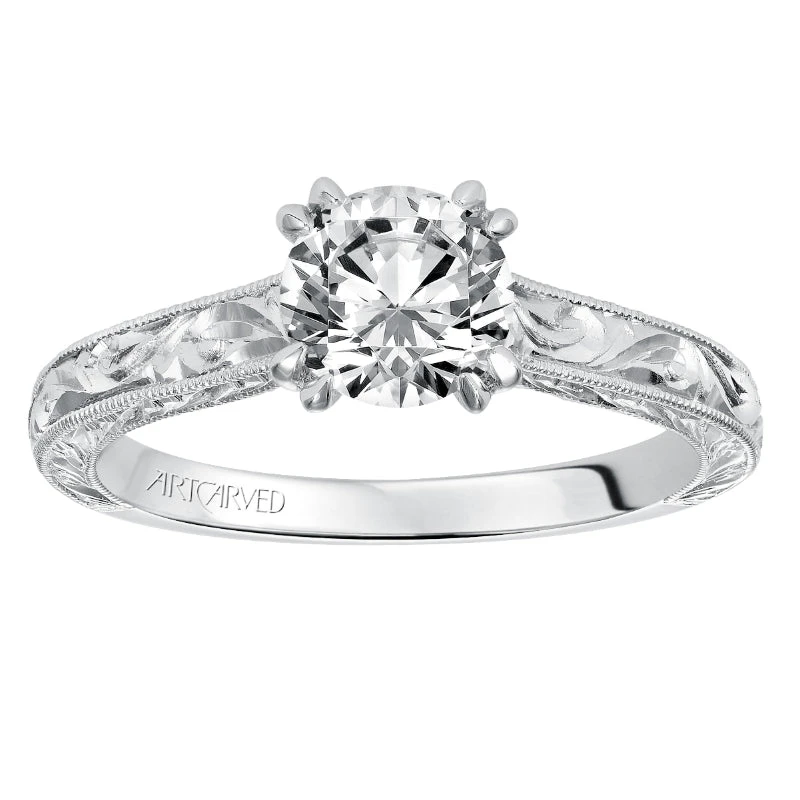ArtCarved Bridal Artcarved Bridal Mounted With CZ Center Vintage Engraved Solitaire Engagement Ring Philomena 14K White Gold