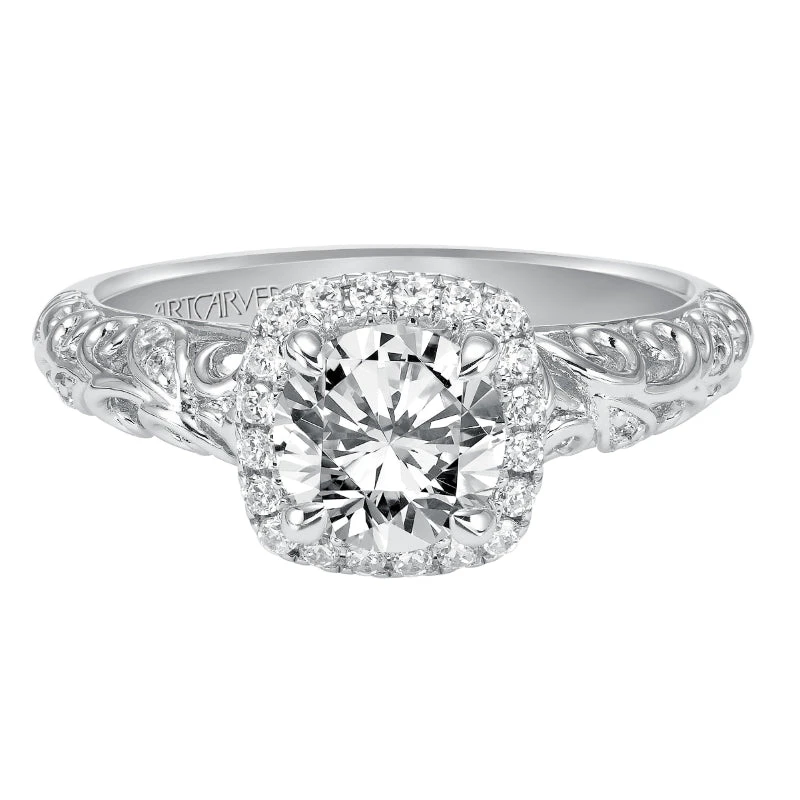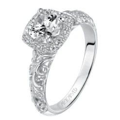 SKU: Y2ZYA 82314157755191 Category: Engagement Rings Tags: Category_l1: Engagement Rings>Halo, Category_l2: Halo, Category_tree: Engagement Rings>Halo, Center_stone_shape: Round, Collection: Filigr, Designer: ArtCarved Bridal, Gemstone_setting: Prong, Gender: Women, Metal_color: White, Metal_type: 14k Gold, Type_of_gemstone: Cubic Zirconia