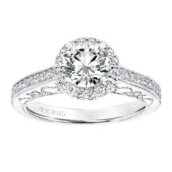 SKU: Y2ZYA 82314780674871 Categories: Engagement Rings, Halo Tags: Category_l1: Engagement Rings>Halo, Category_l2: Halo, Category_tree: Engagement Rings>Halo, Center_stone_shape: Round, Collection: Heritage, Designer: ArtCarved Bridal, Diamond_setting: Prong, Gemstone_color: White, Gender: Women, Metal_color: White, Metal_type: 14k Gold, Number_of_diamonds: 53, Type_of_gemstone: Cubic Zirconia