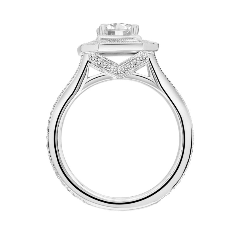 ArtCarved Bridal Artcarved Bridal Mounted With CZ Center Vintage Milgrain Halo Engagement Ring Maeve 14K White Gold