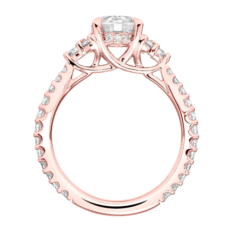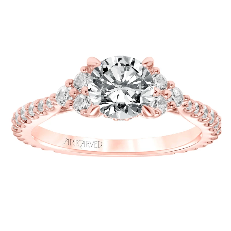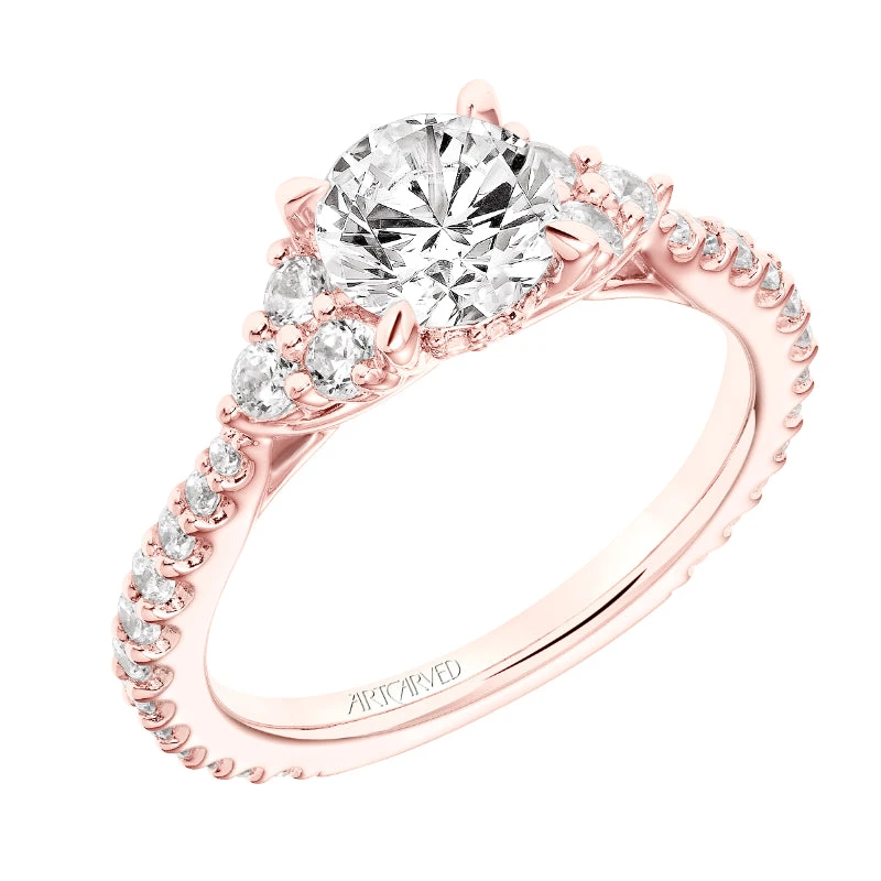 ArtCarved Bridal Artcarved Bridal Semi-Mounted With Side Stones Classic 3-Stone Engagement Ring Clio 14K Rose Gold