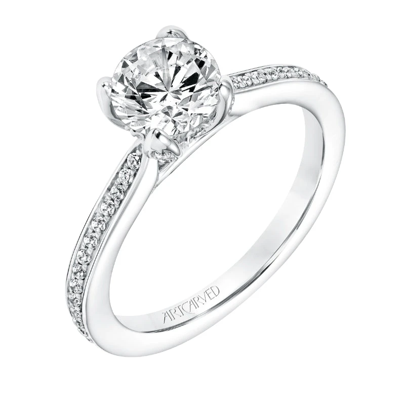 ArtCarved Bridal Artcarved Bridal Semi-Mounted With Side Stones Classic Diamond Engagement Ring Zelda 14K White Gold