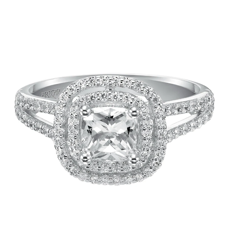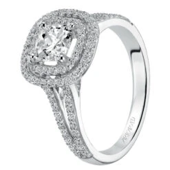 SKU: Y2ZYA 82313611512631 Categories: Double Halo, Engagement Rings Tags: Category_l1: Engagement Rings>Double Halo, Category_l2: Double Halo, Category_tree: Engagement Rings>Double Halo, Center_stone_shape: Cushion, Designer: ArtCarved Bridal, Gender: Women, Metal_color: White, Metal_type: 14k Gold, Number_of_diamonds: 100