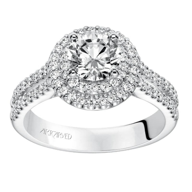 SKU: Y2ZYA 82314417605431 Categories: Double Halo, Engagement Rings Tags: Category_l1: Engagement Rings>Double Halo, Category_l2: Double Halo, Category_tree: Engagement Rings>Double Halo, Center_stone_shape: Round, Collection: Halo, Designer: ArtCarved Bridal, Gender: Women, Metal_color: White, Metal_type: 14k Gold
