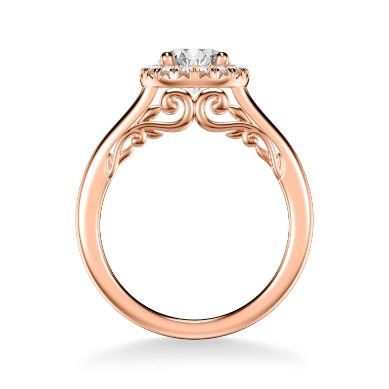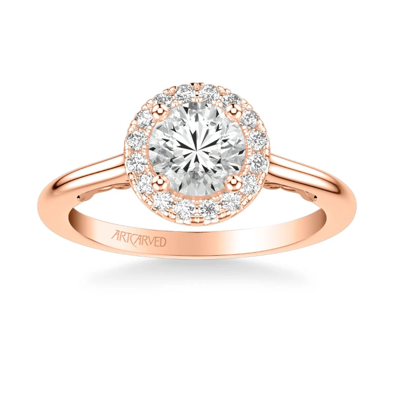 ArtCarved Bridal Artcarved Bridal Semi-Mounted With Side Stones Classic Lyric Halo Engagement Ring Cleo 14K Rose Gold