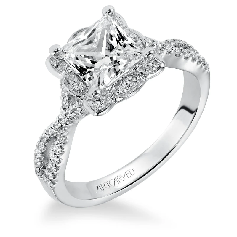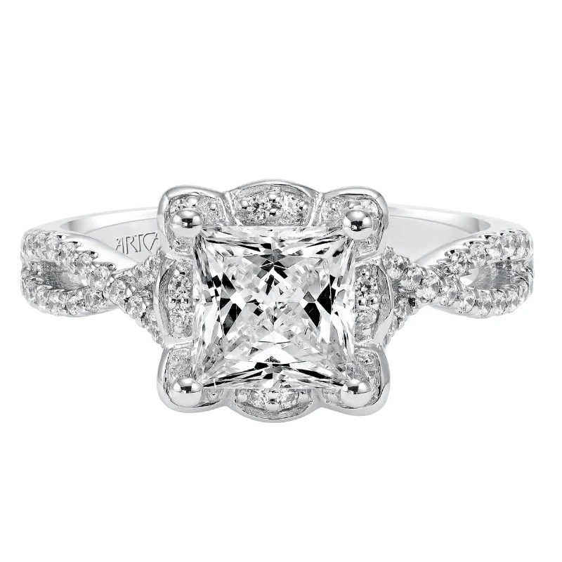 SKU: Y2ZYA 82313467005751 Categories: Engagement Rings, Halo Tags: Category_l1: Engagement Rings>Halo, Category_l2: Halo, Category_tree: Engagement Rings>Halo, Center_stone_shape: Princess, Collection: Floral, Designer: ArtCarved Bridal, Gender: Women, Metal_color: White, Metal_type: 14k Gold, Number_of_diamonds: 52