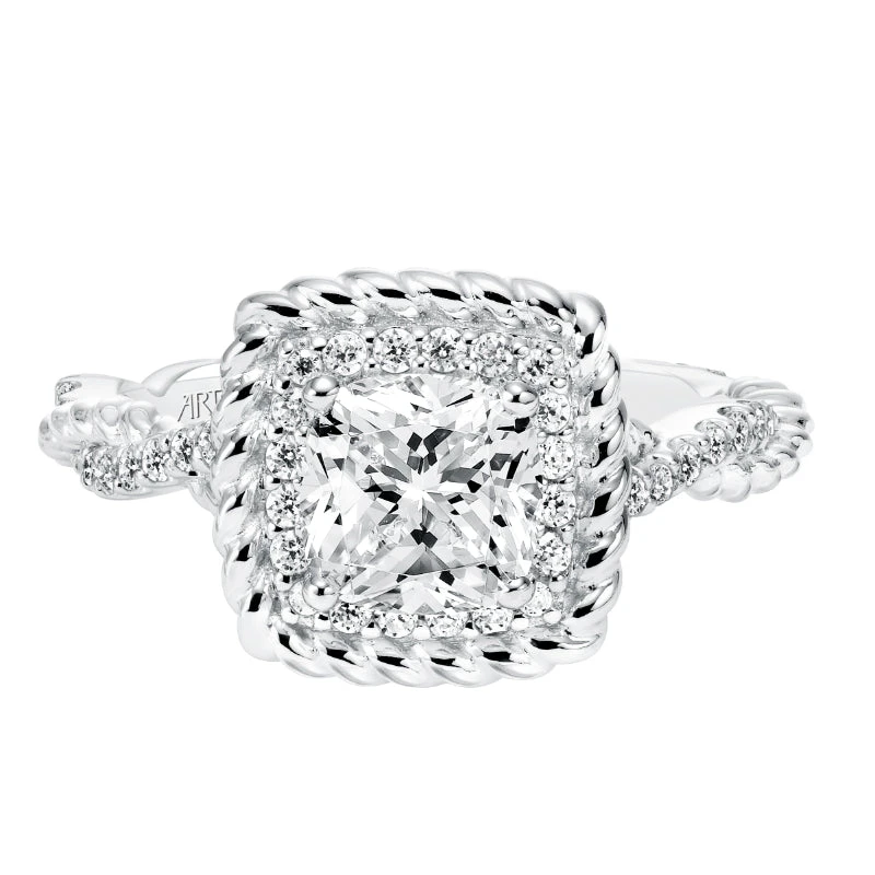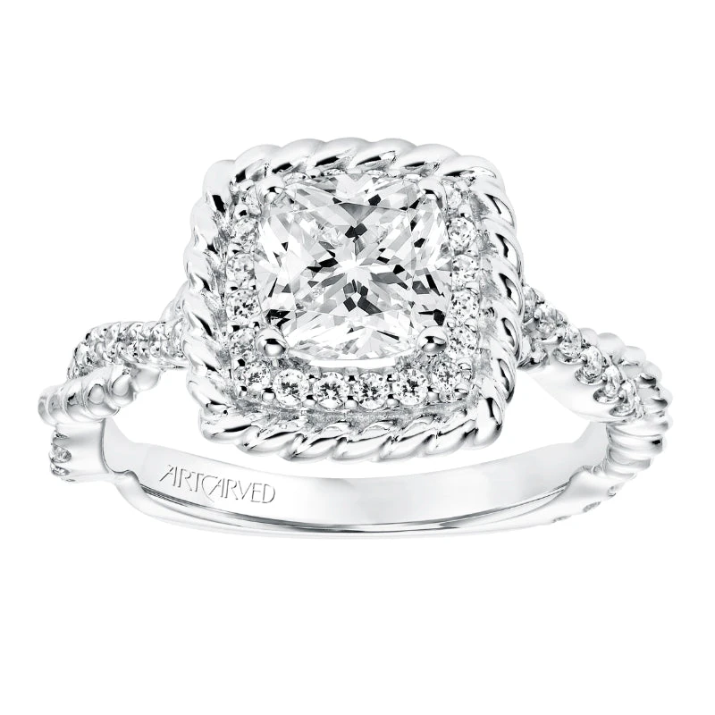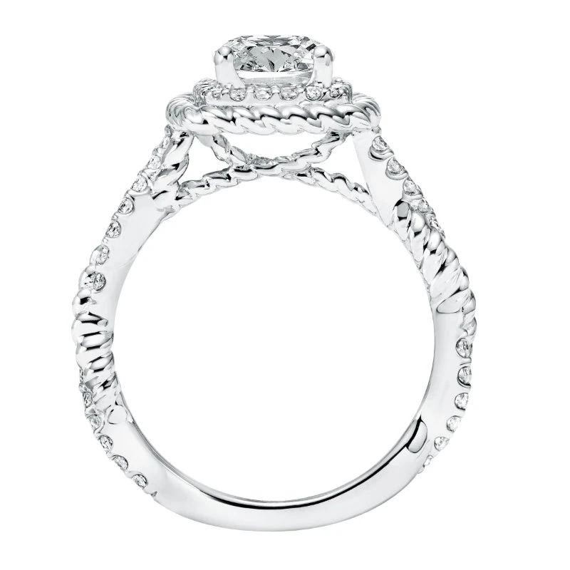 ArtCarved Bridal Artcarved Bridal Semi-Mounted With Side Stones Contemporary Rope Halo Engagement Ring Ashby 14K White Gold