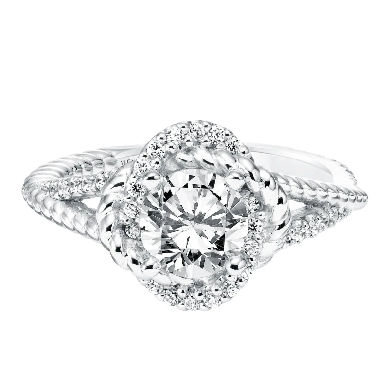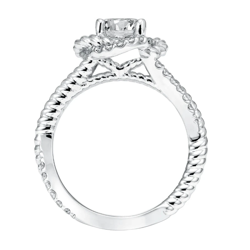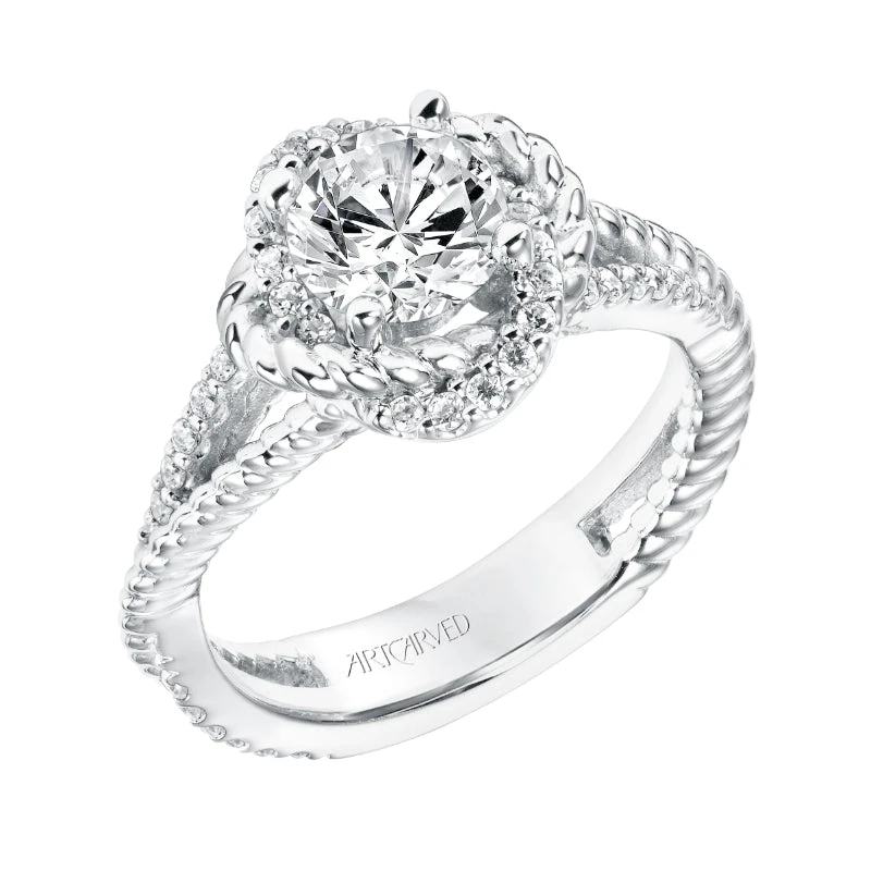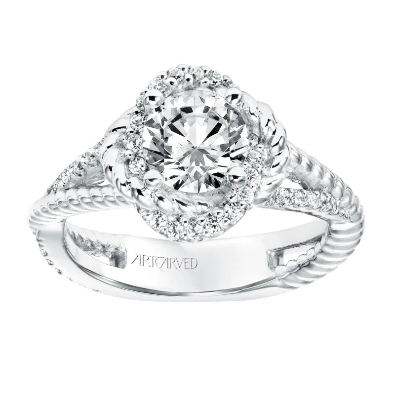 ArtCarved Bridal Artcarved Bridal Semi-Mounted With Side Stones Contemporary Rope Halo Engagement Ring Ivy 14K White Gold