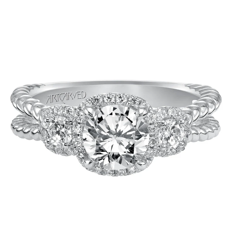 ArtCarved Bridal Artcarved Bridal Semi-Mounted With Side Stones Contemporary Twist 3-Stone Engagement Ring Mandy 14K White Gold