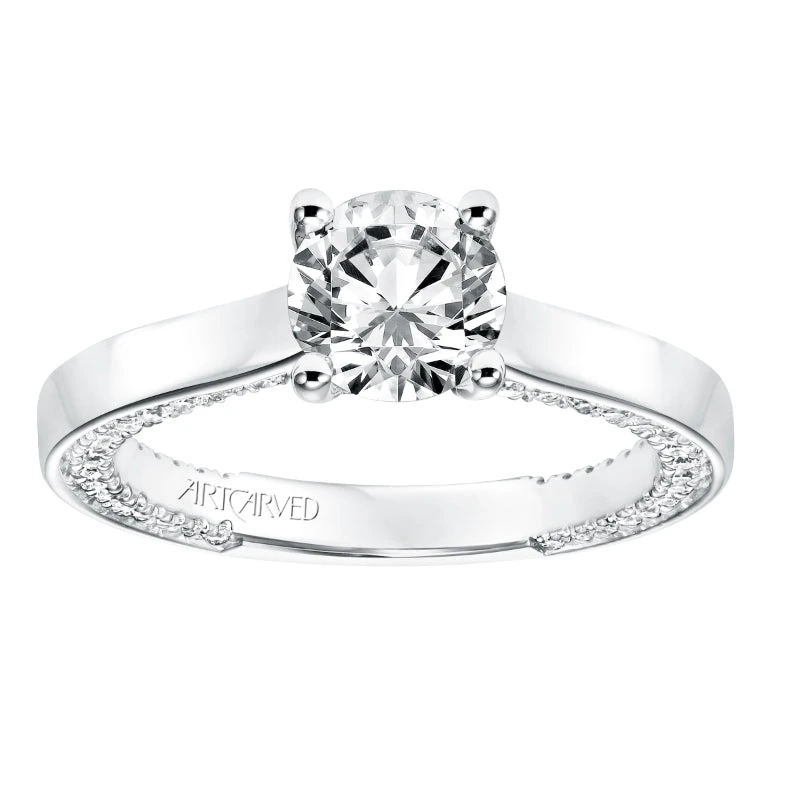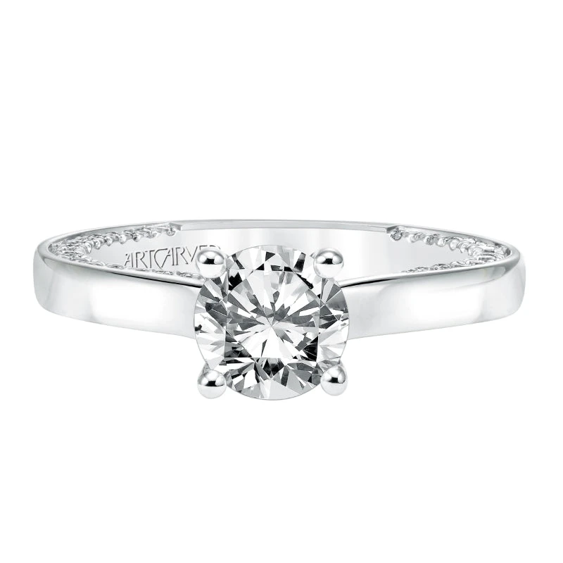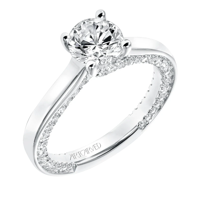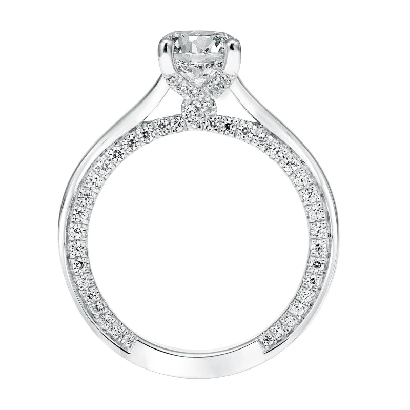 SKU: Y2ZYA 82314763635511 Categories: Engagement Rings, Solitaire Tags: Category_l1: Engagement Rings>Solitaire, Category_l2: Solitaire, Category_tree: Engagement Rings>Solitaire, Center_stone_shape: Round, Collection: Twist, Designer: ArtCarved Bridal, Gender: Women, Metal_color: White, Metal_type: 14k Gold, Number_of_diamonds: 88