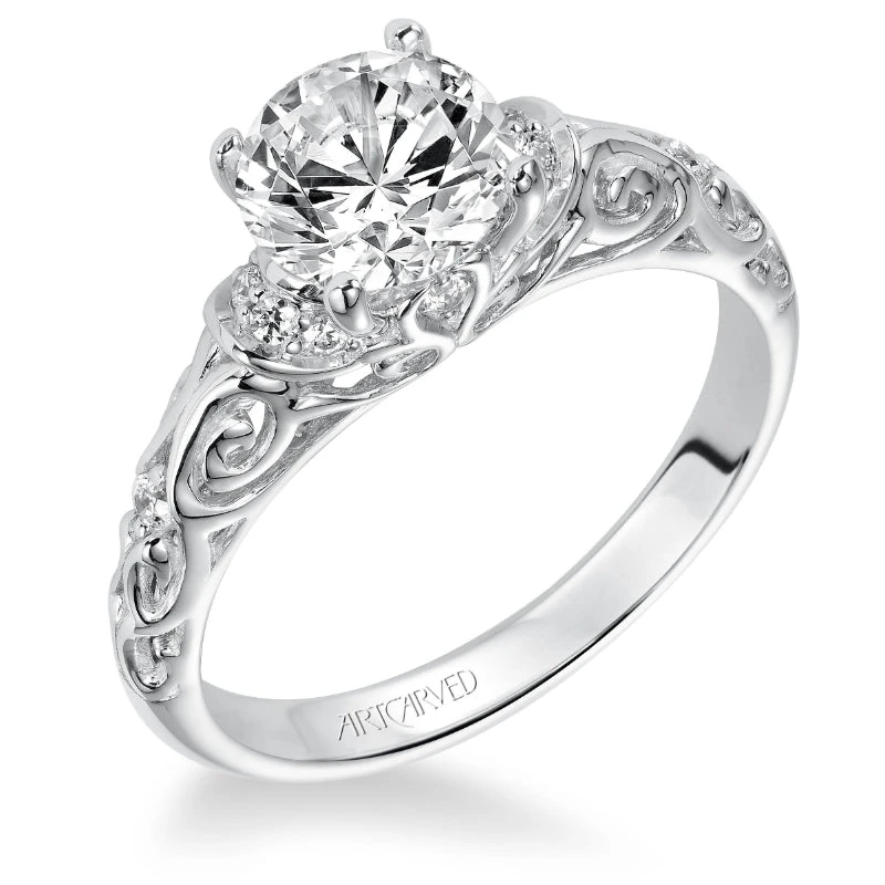 ArtCarved Bridal Artcarved Bridal Semi-Mounted With Side Stones Vintage Engagement Ring Peyton 14K White Gold