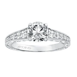 SKU: Y2ZYA 82314676800311 Categories: Engagement Rings, Vintage Tags: Category_l1: Engagement Rings>Vintage, Category_l2: Vintage, Category_tree: Engagement Rings>Vintage, Center_stone_shape: Round, Collection: Filigr, Designer: ArtCarved Bridal, Gender: Women, Metal_color: White, Metal_type: 14k Gold, Number_of_diamonds: 30