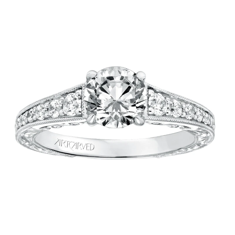 ArtCarved Bridal Artcarved Bridal Semi-Mounted With Side Stones Vintage Filigree Diamond Engagement Ring Hattie 14K White Gold