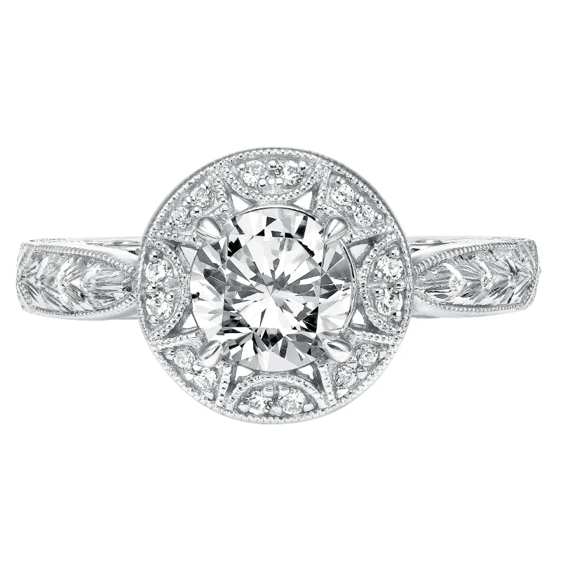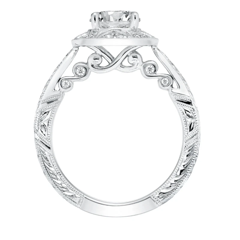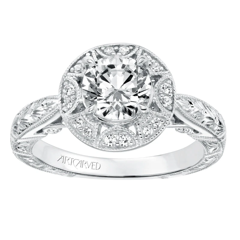 ArtCarved Bridal Artcarved Bridal Semi-Mounted With Side Stones Vintage Filigree Halo Engagement Ring Eleanor 14K White Gold