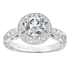 Be the first to review “ArtCarved Bridal Artcarved Bridal Semi-Mounted With Side Stones Vintage Filigree Halo Engagement Ring Eleanor 14K White Gold” Cancel reply