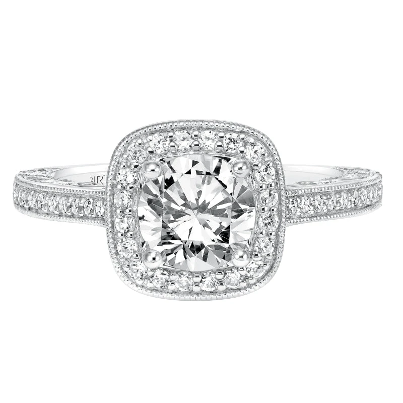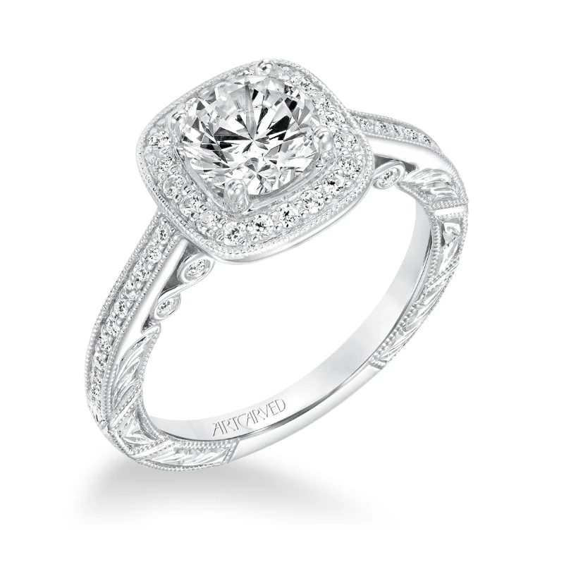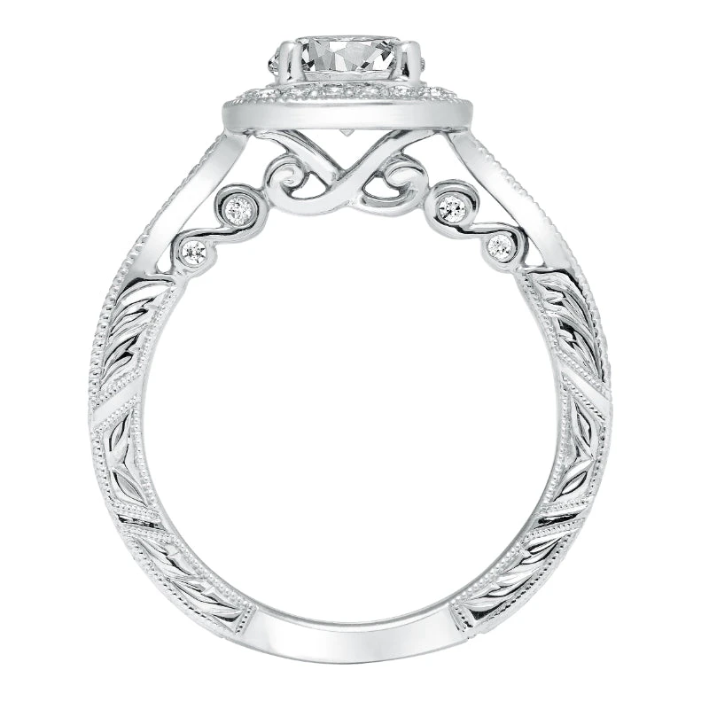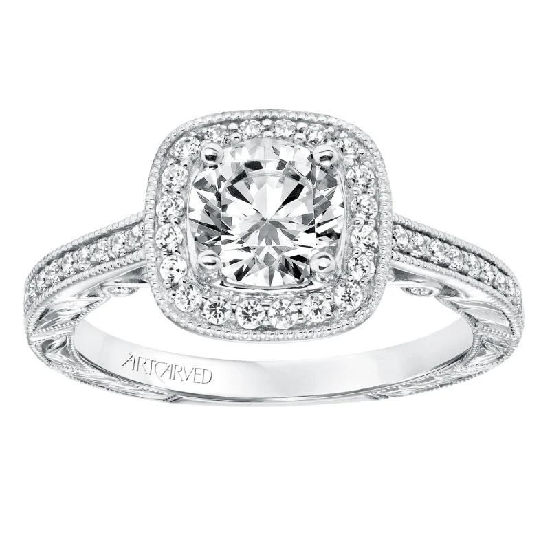 ArtCarved Bridal Artcarved Bridal Semi-Mounted With Side Stones Vintage Filigree Halo Engagement Ring Elspeth 14K White Gold